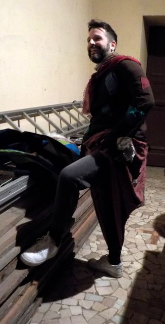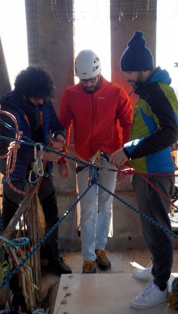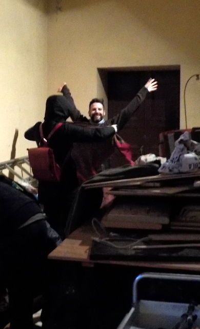 Oramai i ruoli si sono delineati per la manifestazione del pomeriggio: Stefano scenderà in corda doppia facendo da "apripista" alla Befana che sarà interpretata da Lorenzo, il quale scende facendo la prova dei fumogeni che ha acquistato per migliorare la scenografia, con David nel ruolo di "manovratore" delle corde. So che gli dispiacerà non essere lui nei panni della "vecchina", ma dopo otto anni da quando abbiamo iniziato questa collaborazione, per la prima volta non voglio perdermi l'occasione di vedere lo spettacolo dalla piazza.