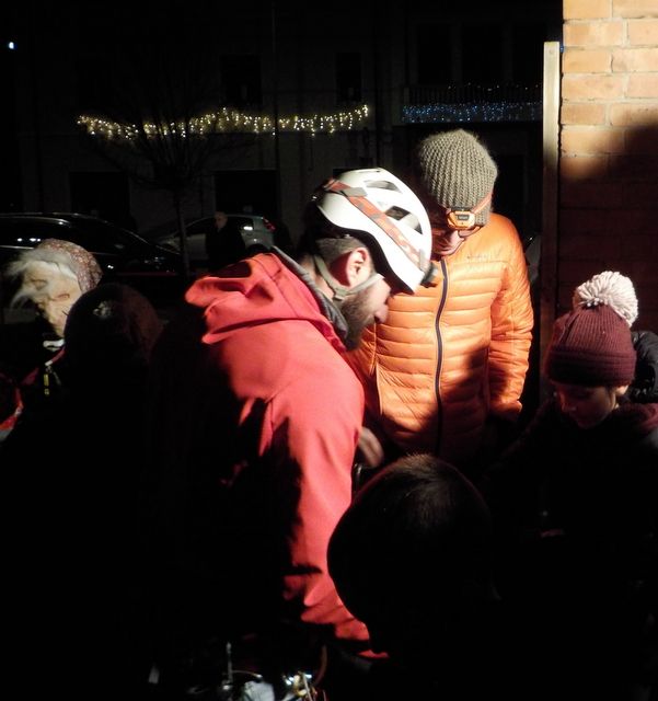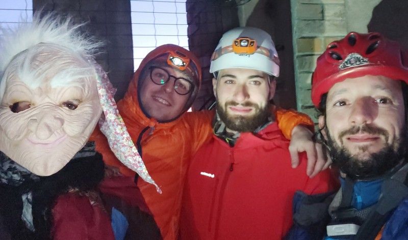 Arriva anche qualche amico arrampicatore, e pure Giulia (la Befana 2019) che offre spontaneamente una consulenza nella vestizione di Lorenzo che intanto se la ride allegramente e... fa vedere la gamba.