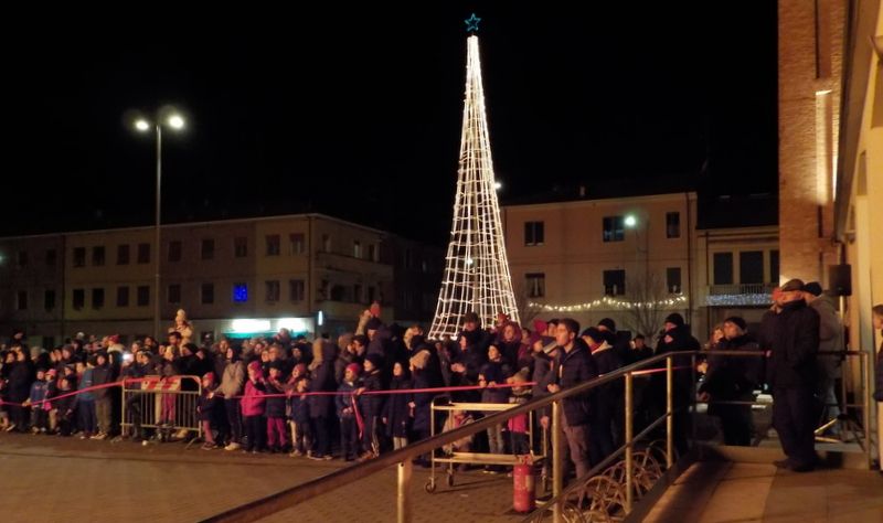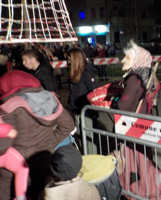 All'arrivo a terra della Befana la piazza presenta un bel colpo d'occhio, atmosfera divertita e mentre gli adulti chiacchierano, i piccoli vanno a "pressare" a ridosso dei cesti che la befana ha portato scendendo dal campanile.