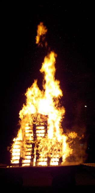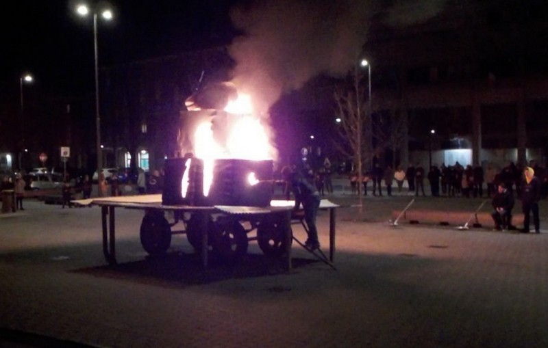 Probabilmente, in tanti nemmeno si erano accorti di quel carretto con sopra una sagoma a sembianze umane con tanto di cappellone in testa; ora diventerà il protagonista del finale della festa, non appena i "fuochisti" avranno finito di appiccare ordinatamente il fuoco su tutti i lati della sagoma. Don Silvano invita tutti a guardare in silenzio, a godere di quella presenza calda alla quale l'uomo di città si è disabituato, perdendone il contatto diretto.