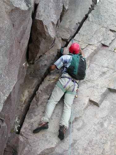 diedro riprende subito sopra, ma la fessura di fondo è svasata e poco