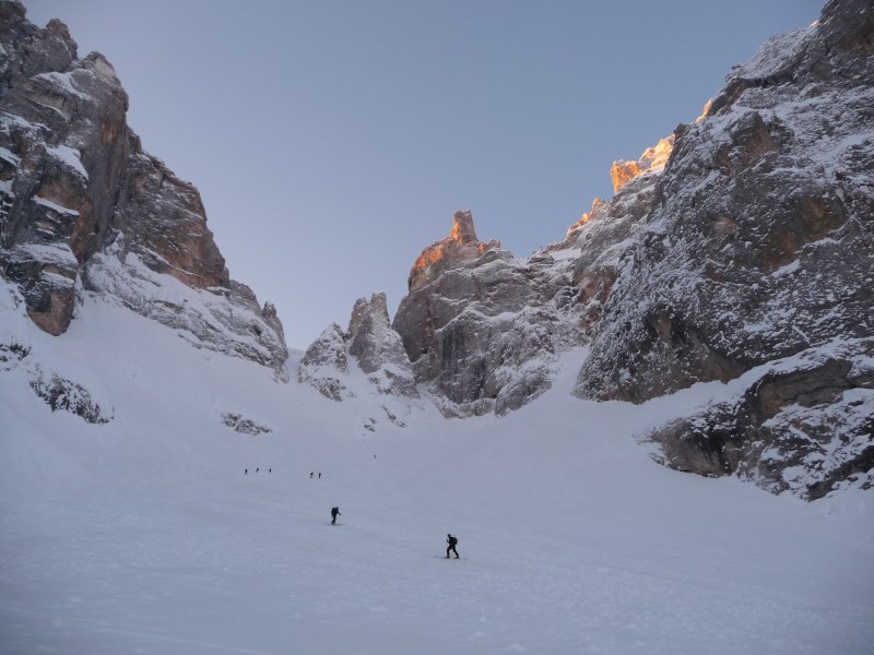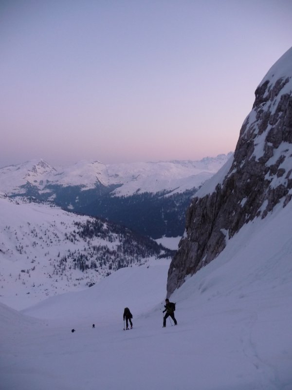 imboccare il ghiacciaio del Travignolo, mentre il cielo schiarisce ci