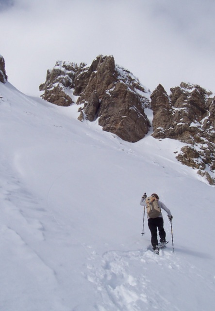 cambiare le sue ciaspole, di certo più adatte ai terreni orizzontali
